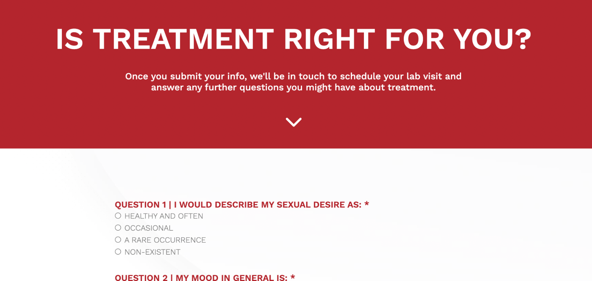 Our team huddled and came up with an action plan. We decided to change the funnel and give users a different experience of a unique landing page where patients were given more information about the clinic and the entire testosterone treatment process.